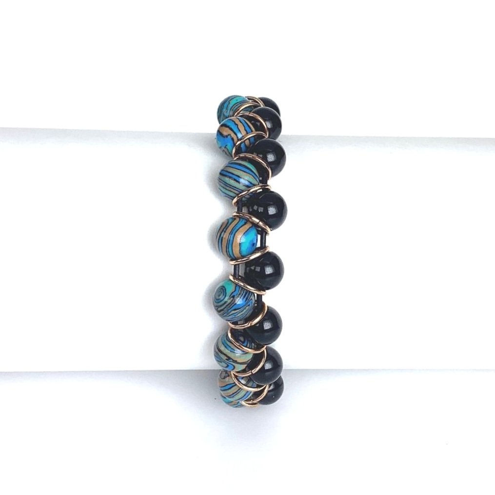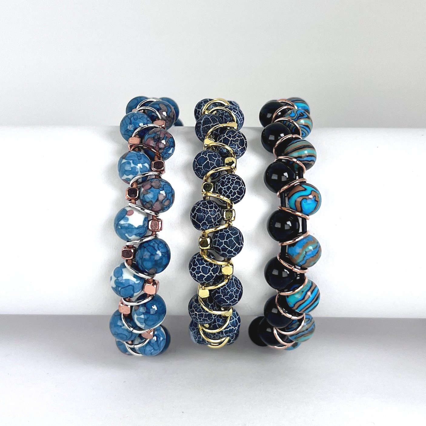 - 8mm Agate, Malachite Peacock & Dark Blue Rainbow stones