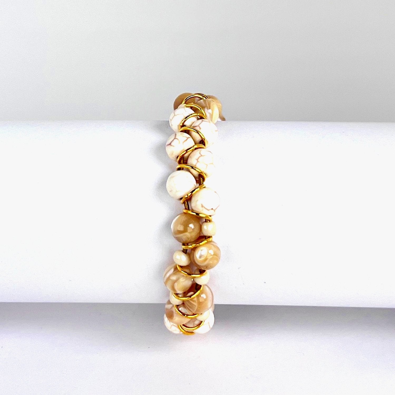 - 8mm Natural Brown Trochus Shell, Howlite Stones, metal jump rings, glass seed beads