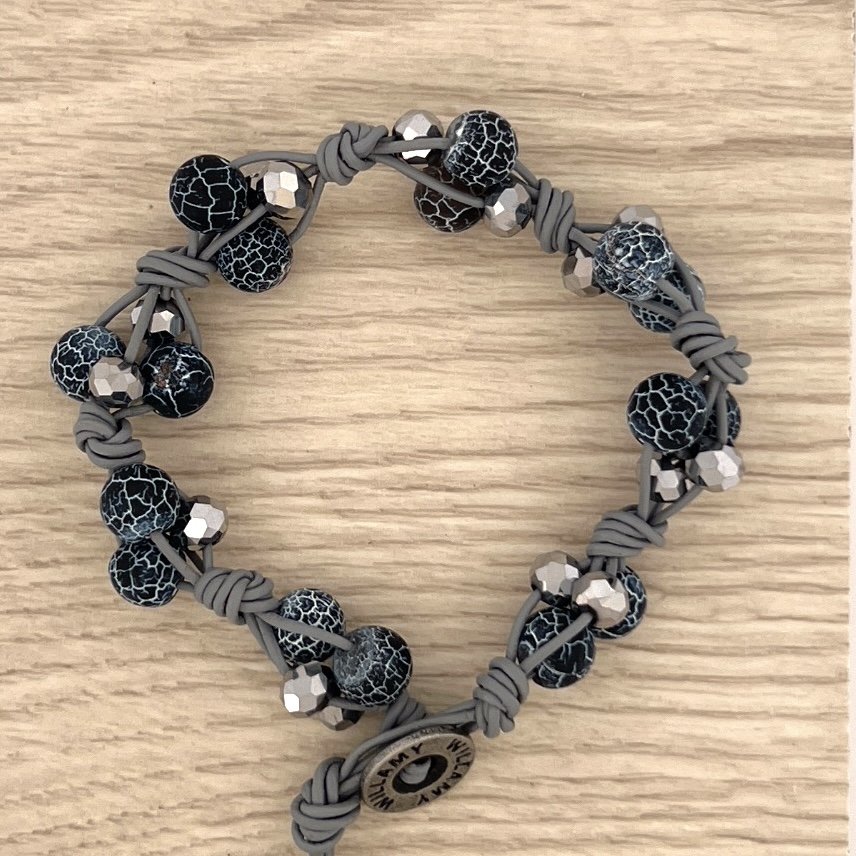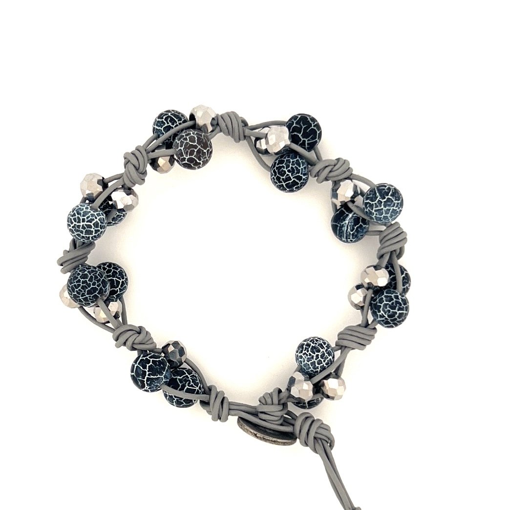 Our new Denim Shine Laurel Bracelet is a whimsical and timeless design handwoven with genuine leather and Hematite crystals for an elegant and sophisticated look.