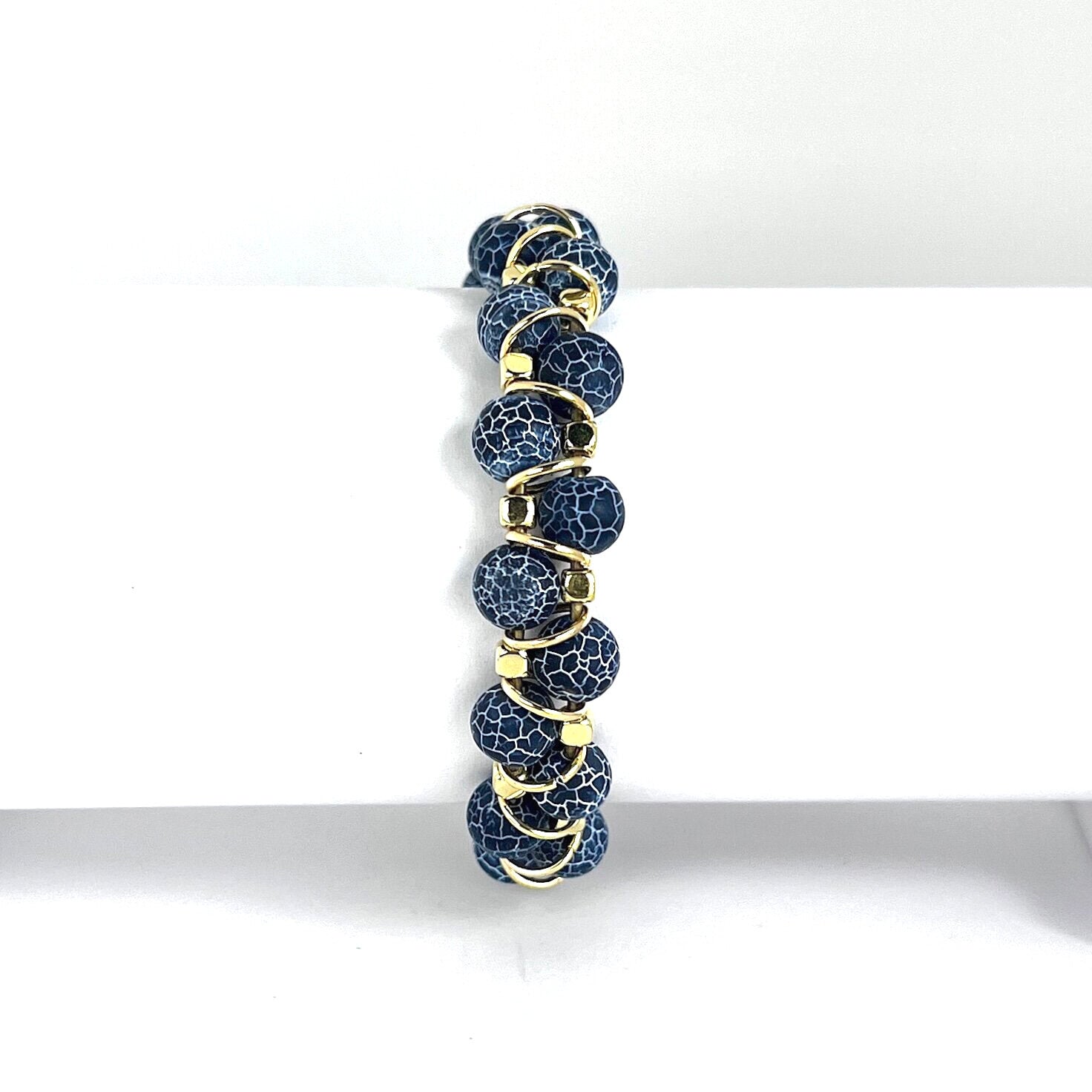 - Materials: 8mm Blue Crackled Agate. gold-tone side beads