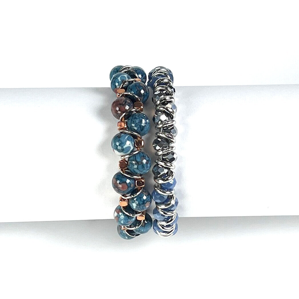 Metallic Blue: an alternating 6mm metallic silver and blue crystal bracelet with silver tone jump rings.