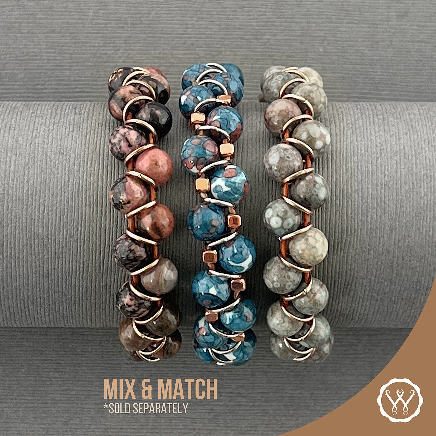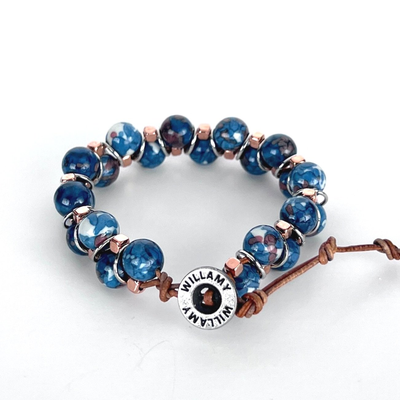 Stunning Dark Blue Rainbow Stones featuring deep blue stone with hints of coral handcrafted on genuine leather. Fastens with an engraved Willamy metal button.
