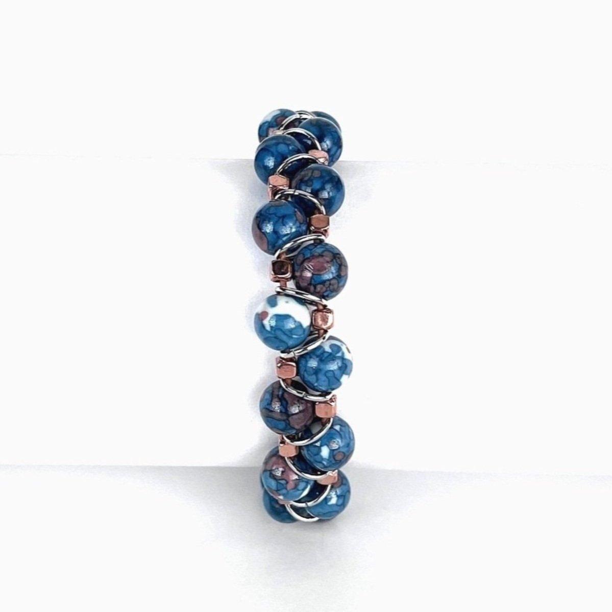 - 8mm Dark Blue Rainbow Stones metal jump rings & accent beads