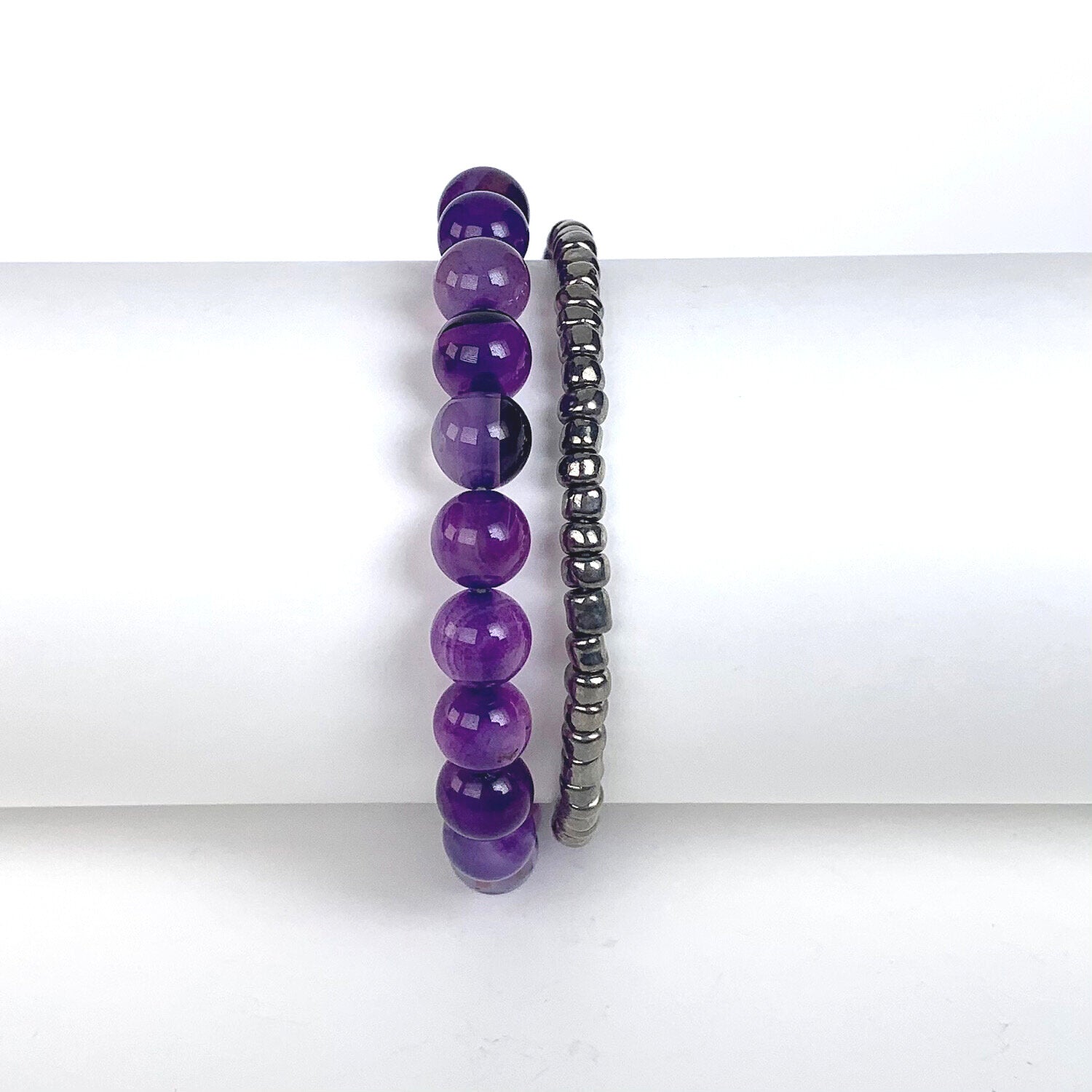 Handcrafted Purple Agate stones with Miyuki glass beads on genuine leather. Fastens with an engraved Willamy metal button.