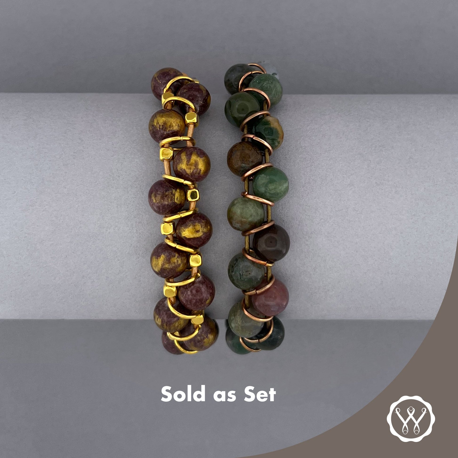 (2) Deep purple 8mm Jade stones, surrounded by gold-tone accent beads on Genuine Leather.