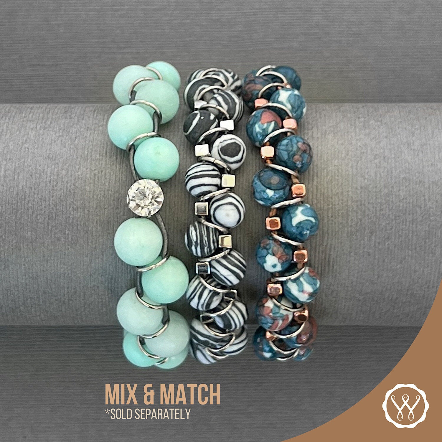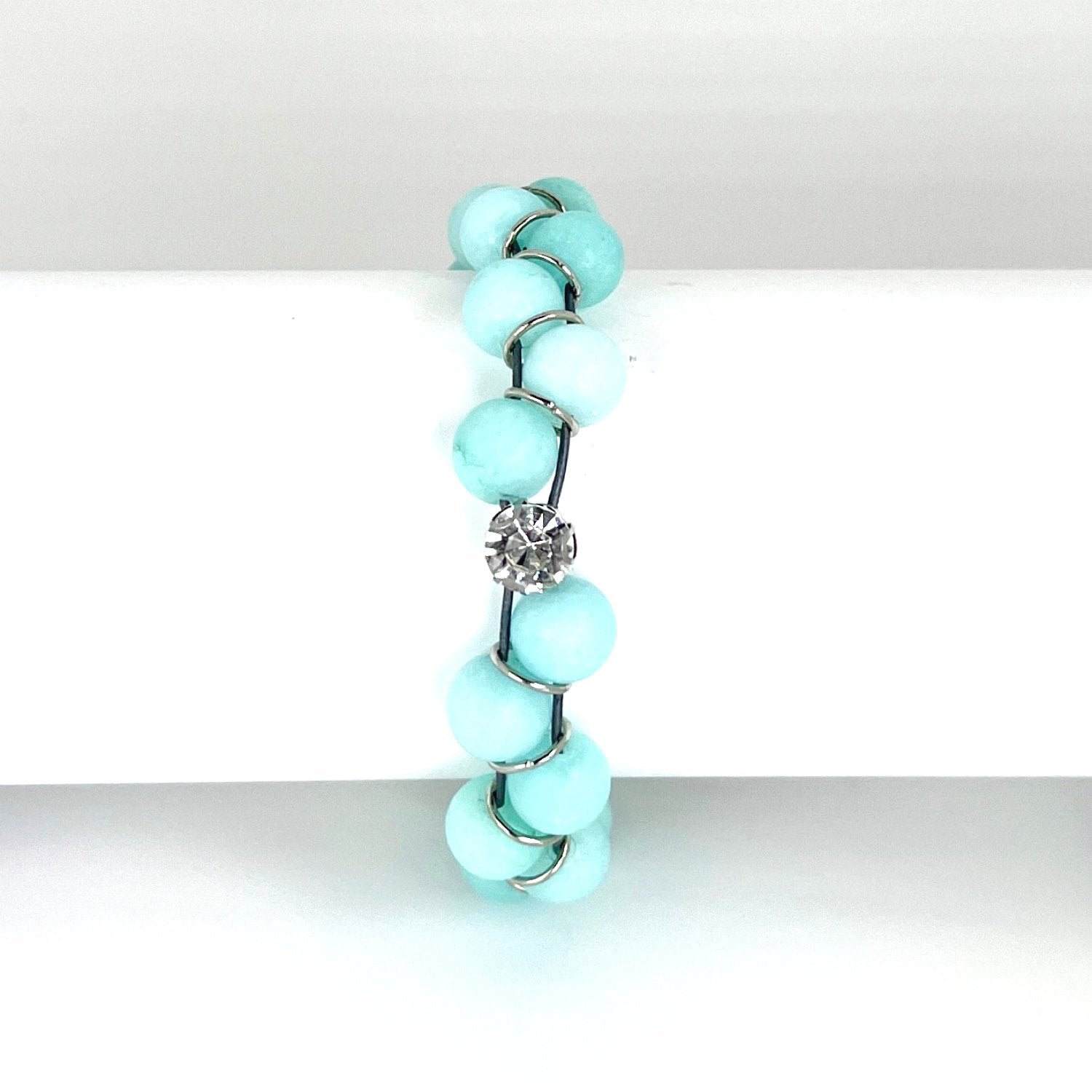 - 8mm Sea Foam Agate stones with metal jump rings & rhinestone