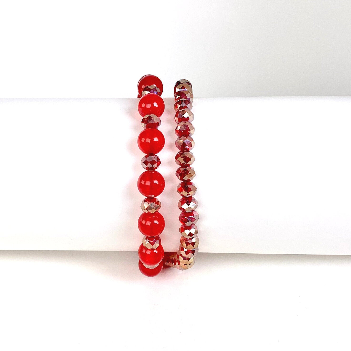 Combo includes 3 artisan bracelets (double strands) handcrafted with Red Agate stones, glass pearls, marble agate and glass seed beads on genuine leather. Fastens with an engraved Willamy metal button.