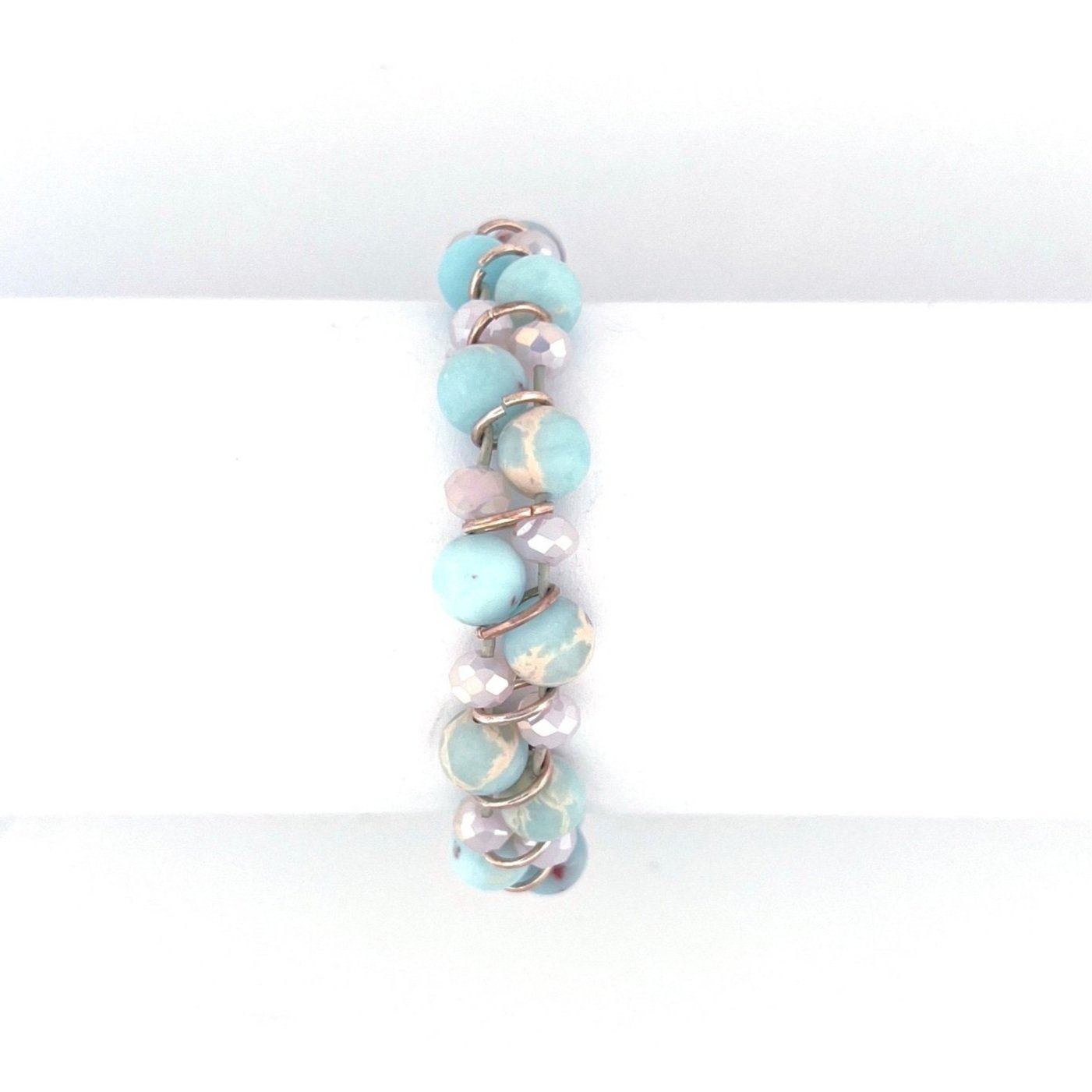 - Materials: 8mm Snakeskin Shoushan Stones, Pink Crystals & Rose gold-tone Metal Jump Rings